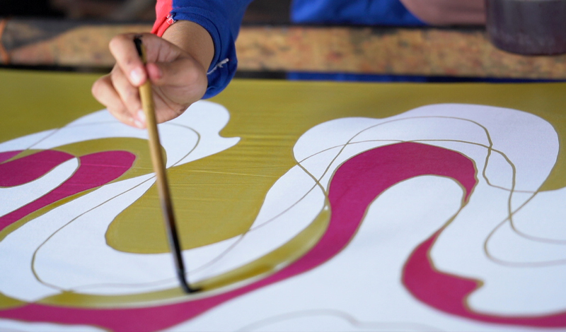 Handblocked batik made with golden wax for expensive/exclusive looks.